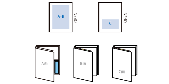 - 箔押し:A・B/W40×H40(mm)、W5×H55(mm) 素押し:A/W40×H40 (mm)、C/W40×35 (mm)