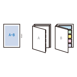 - 箔押し:A・B/W40×H40(mm)、W5×H55(mm) 素押し:B/W40×H40(mm)※A 面は印刷不可